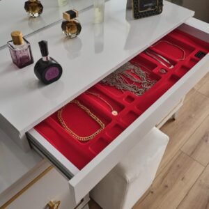 Les tables de chevet et la coiffeuse complètent harmonieusement la série Florensa, offrant une solution complète pour une chambre parfaitement organisée, fonctionnelle et agréable à vivre.