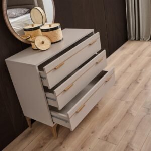 Les tables de chevet et la coiffeuse viennent compléter la série Nova, offrant des solutions fonctionnelles et esthétiques pour une chambre organisée, pratique et agréable à vivre.