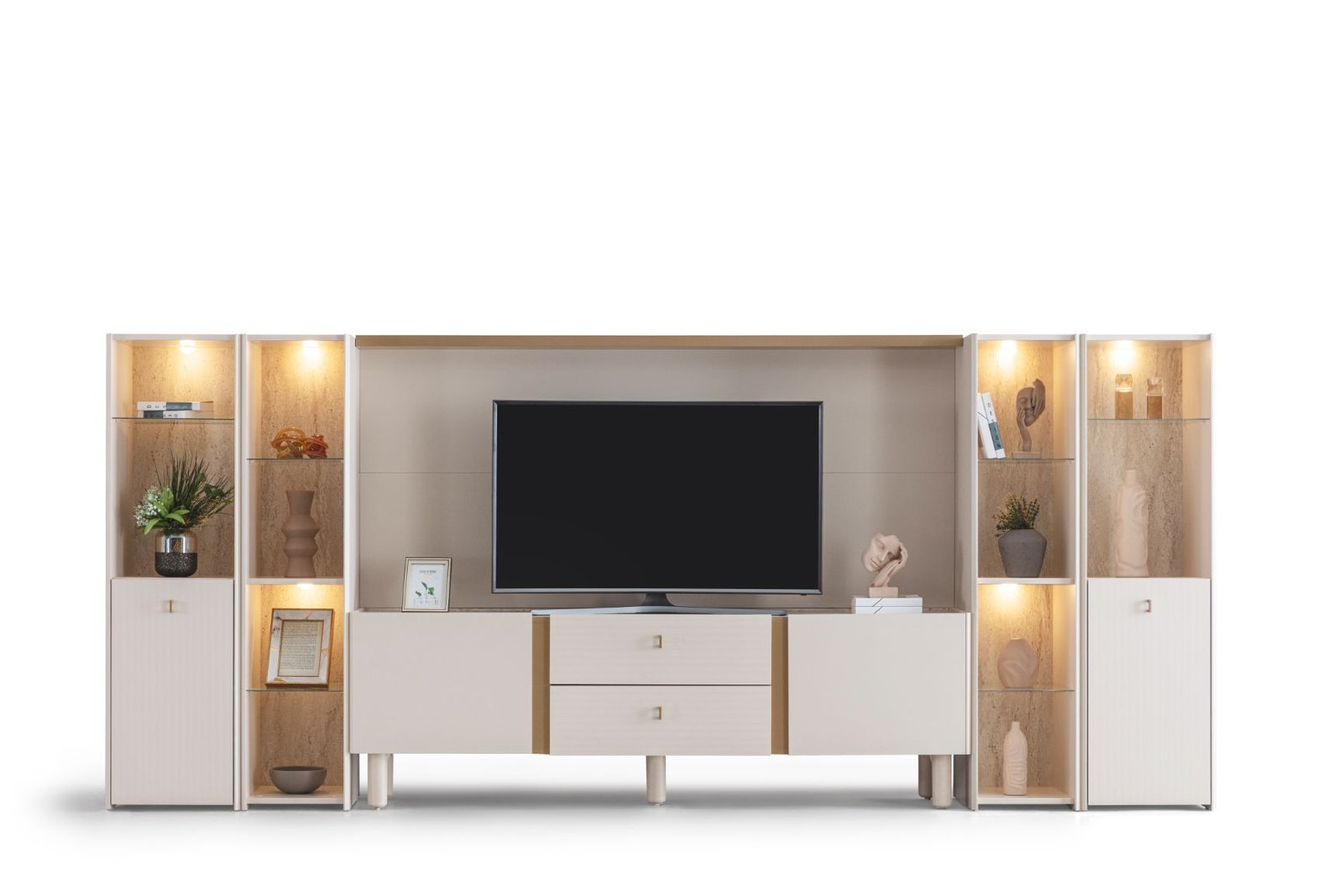 La série Renata offre une solution de rangement à la fois esthétique et pratique, pensée pour sublimer votre intérieur. Son design raffiné, associé à des matériaux résistants et des finitions dorées, en fait un meuble durable et élégant.